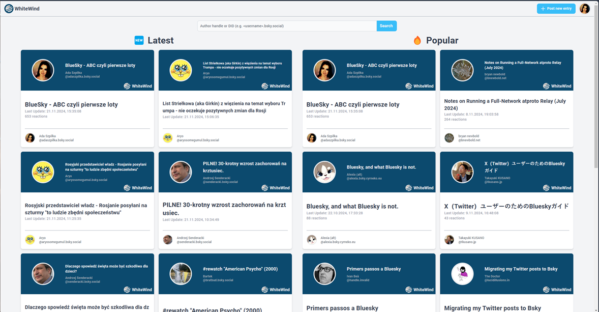 - WhiteWind - platforma blogowa, dla osób oferujących np. felietony