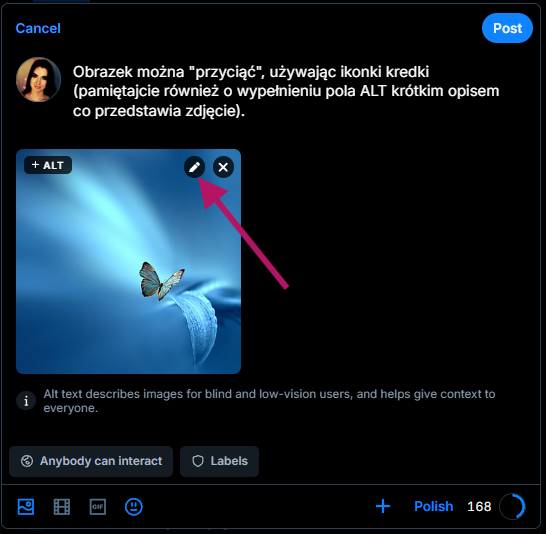 Na tej platformie post/tweet nazywamy Skeet od połączenia BlueSky i Tweet, bowiem od Twittera BlueSky się wywodzi, ale możesz też używać określenia post. Jak go utworzyć? Nic prostszego. Kliknij ten przycisk: