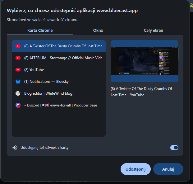 Po naciśnięciu przycisku „Start Streaming” pojawi się okno dialogowe z prośbą o pozwolenie na wejście mikrofonowe, kliknij jedną z opcji „Zezwalaj”.