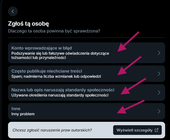 Konta sprawiające Ci wybitny problem - po prostu banuj. Jeśli ktoś Cię zaczepia na DM w sposób sugerujący wyłudzenie, propozycje seksualne, czy inne dyskomfortowe zachowania - nie odpowiadaj, tylko banuj.