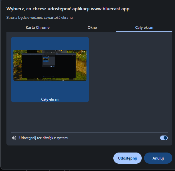 - Share Screen - udostępniać swoim gościom wybraną zawartość ekranu