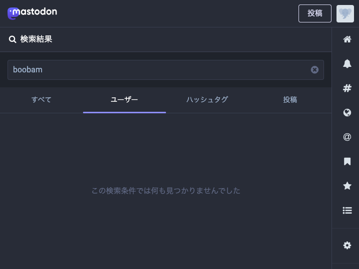 ユーザー検索も不便です。たとえば、誰かがフェディバース上で私(boobam)のアカウントをフォローしたい場合を想像してください。私はmisskey.ioにアカウントを持っていますが、リモートフォロワーがいないため、他サーバーから「boobam」で検索しても結果に表示されません。
